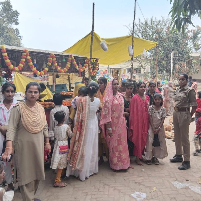कठेला समयमाता मंदिर में पुलिस की जन चौपाल:इटवा में महिला सुरक्षा-सम्मान-स्वावलंबन पर किया जागरूक