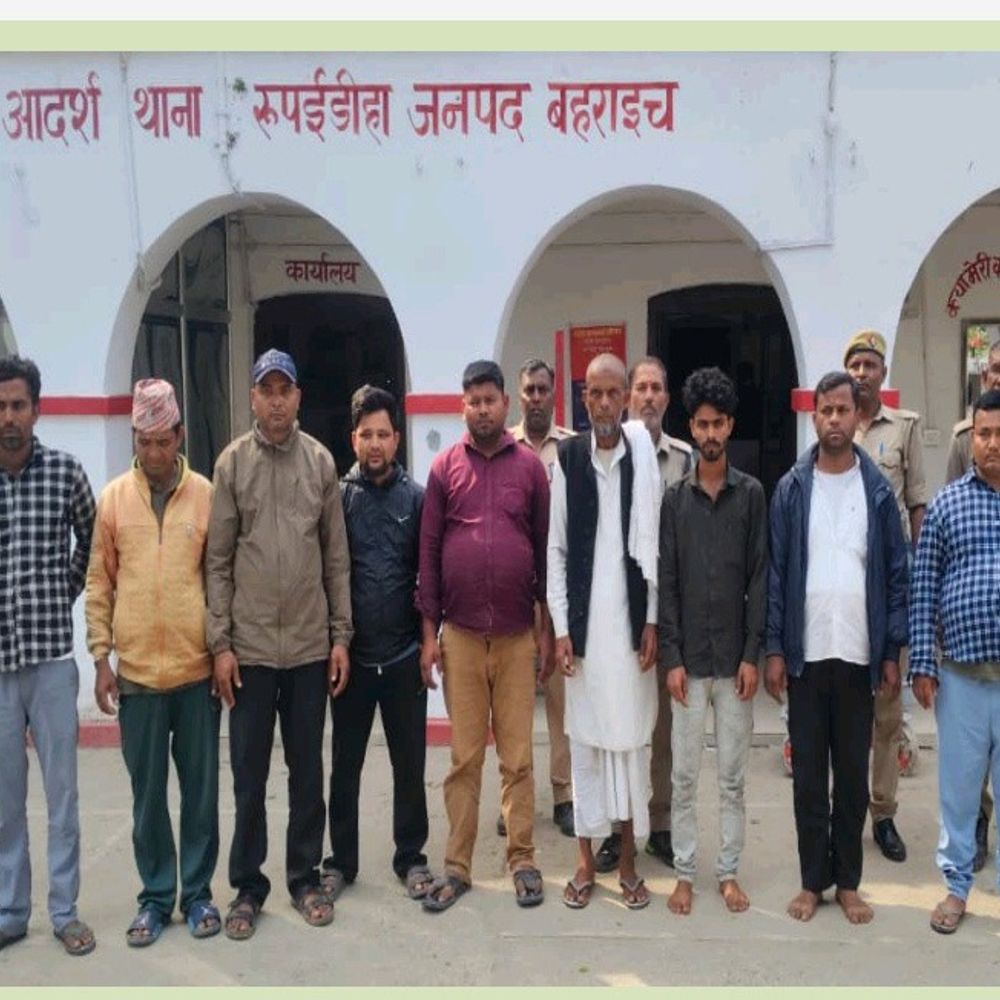 रूपईडीहा (बहराइच)। भारत-नेपाल सीमा पर स्थित रूपईडीहा थाना पुलिस ने चेकिंग अभियान के दौरान आपस में विवाद कर रहे 10 लोगों को गिरफ्तार किया है। पुलिस के अनुसार, यह कार्रवाई शांति एवं कानून व्यवस्था बनाए रखने के उद्देश्य से की गई है। बहराइच पुलिस अधीक्षक के निर्देश पर चलाए जा रहे विशेष अभियान के तहत यह कार्रवाई की गई। अपर पुलिस अधीक्षक (ग्रामीण) दुर्गा प्रसाद तिवारी और क्षेत्राधिकारी नानपारा पहुंप सिंह के पर्यवेक्षण में प्रभारी निरीक्षक रमेश सिंह के नेतृत्व में पुलिस टीम संदिग्ध व्यक्तियों और वाहनों की जांच कर रही थी। जांच के दौरान पुलिस टीम को कुछ लोग आपस में कहासुनी और विवाद करते हुए मिले। इससे मौके पर शांति व्यवस्था भंग होने की आशंका थी। स्थिति की गंभीरता को देखते हुए पुलिस ने तत्काल कार्रवाई करते हुए सभी 10 लोगों को हिरासत में ले लिया। गिरफ्तार किए गए व्यक्तियों में मु० शमीम (लगभग 30 वर्ष, भज्जूपुरवा, बहराइच), लोकेन्द्र शाह (लगभग 28 वर्ष, नेपाल), डम्बर मुहार (लगभग 39 वर्ष, नेपाल), जेव बोहरा (लगभग 38 वर्ष, नेपाल), विश्वेश्वरी (लगभग 55 वर्ष, नेपाल), अमानत अली (लगभग 30 वर्ष, सहाबा, रूपईडीहा, बहराइच), पप्पू पांडे (लगभग 35 वर्ष, कम्हरिया घाट, बहराइच), इबरार अहमद (मल्हीपुर, श्रावस्ती), मोबीन (लगभग 43 वर्ष, श्रावस्ती) और करीम (लगभग 58 वर्ष, दर्जी टोला, रूपईडीहा, बहराइच) शामिल हैं। पुलिस ने बताया कि सभी गिरफ्तार व्यक्तियों के खिलाफ धारा 170 BNSS के तहत कानूनी कार्रवाई की गई है। आवश्यक विधिक प्रक्रिया पूरी करने के बाद उन्हें न्यायालय में पेश किया गया।