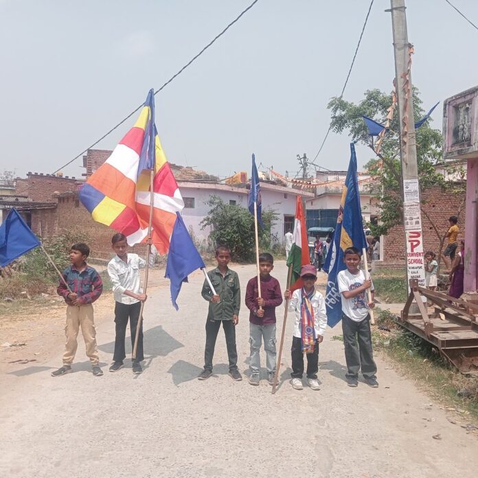 खजुरिया में आंबेडकर जयंती पर निकला जुलूस:ग्रामीणों ने बड़ी संख्या में भाग लेकर मनाई डॉक्टर भीमराव आंबेडकर की जयंती