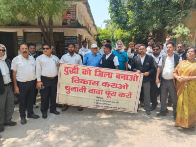 दुद्धी, सोनभद्र।दुद्धी को जिला बनाओ संघर्ष मोर्चा के तत्वावधान में शनिवार को दोपहर करीब 1 बजे कचहरी परिसर मे अधिवक्ताओ ने जमकर प्रदर्शन किया। दुद्धी बार एसोसिएशन के अध्यक्ष कुलभूषण पाण्डेय, सिविल बार एसोसिएशन के नवनिर्वाचित अध्यक्ष रामलोचन तिवारी ने संयुक्त रूप ने कहा कि जनपद सोनभद्र दुद्धी क्षेत्र से अत्यधिक दूरी पर स्थित है।