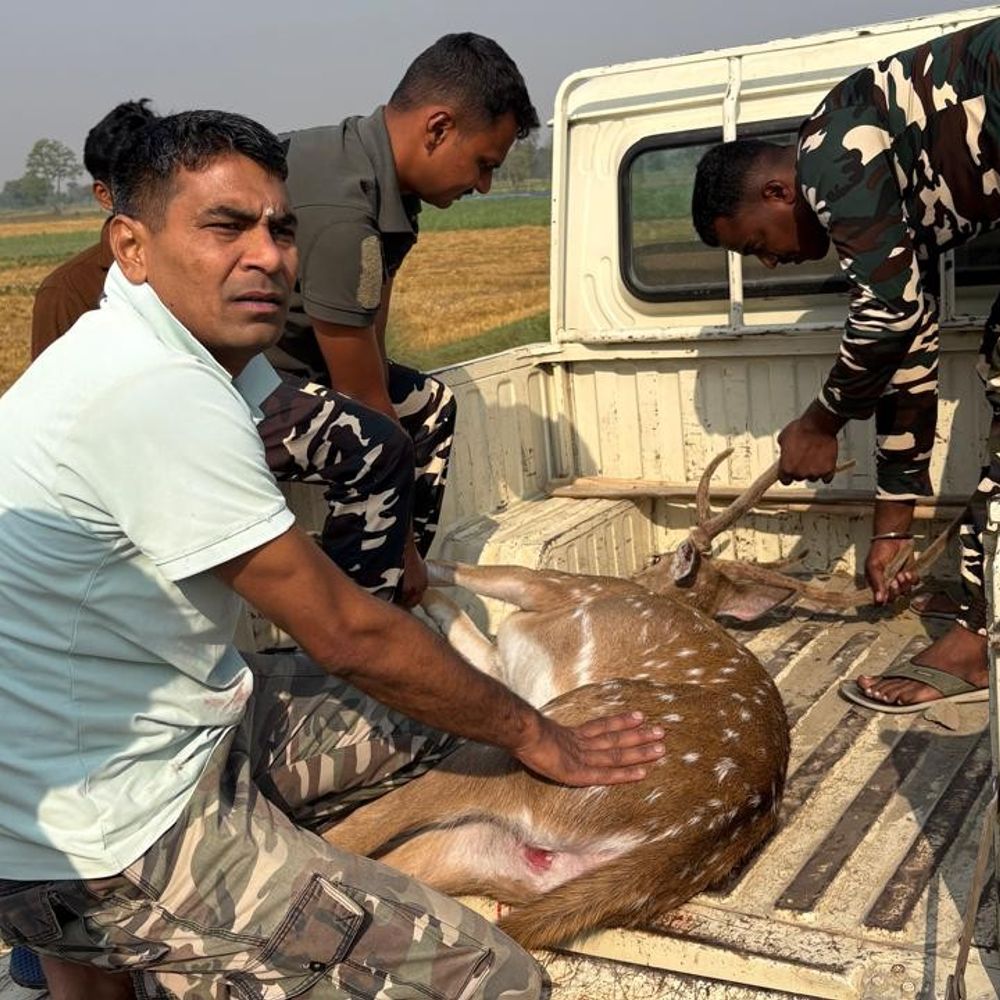जंगली कुत्तों के हमले से घायल चीतल का रेस्क्यू:महराजगंज में SSB टीम ने बचाई जान, वन विभाग को सौंपा