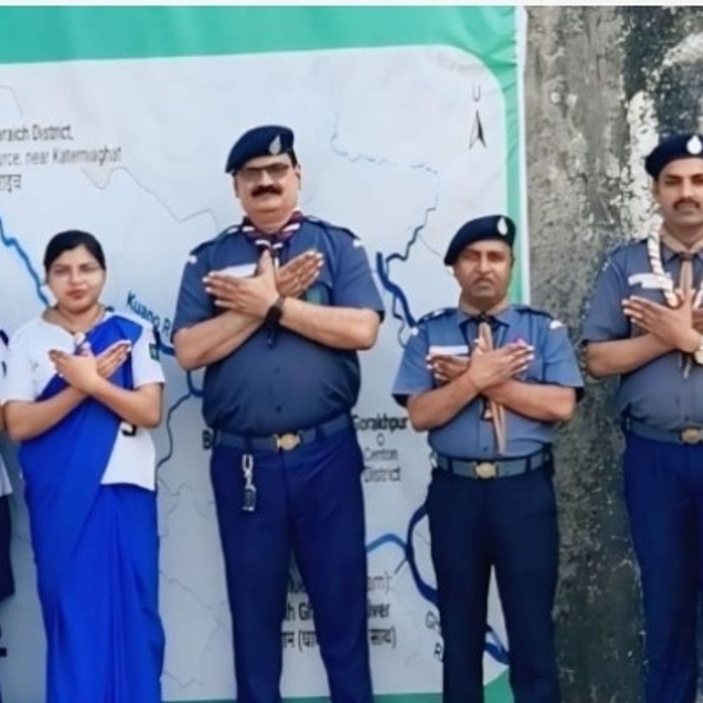 स्काउट गाइड टीम ने अमहट घाट पर स्वच्छता अभियान चलाया:टीम ने ‘मैसेंजर ऑफ पीस’ चिन्ह बनाकर विश्व शांति का संदेश दिया