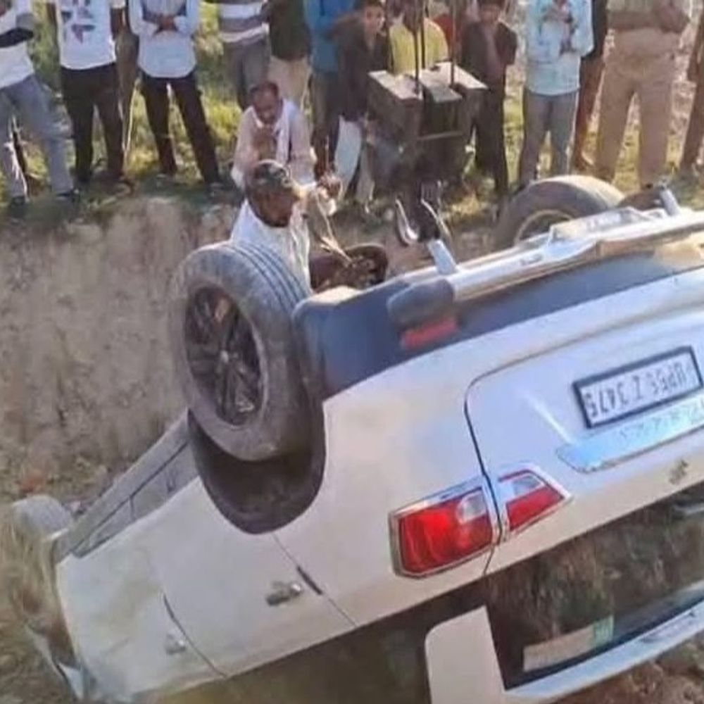 वरिष्ठ भाजपा नेता की कार दुर्घटनाग्रस्त:सिद्धार्थनगर में सड़क से 10 फीट नीचे गिरी, मामूली चोटें आईं