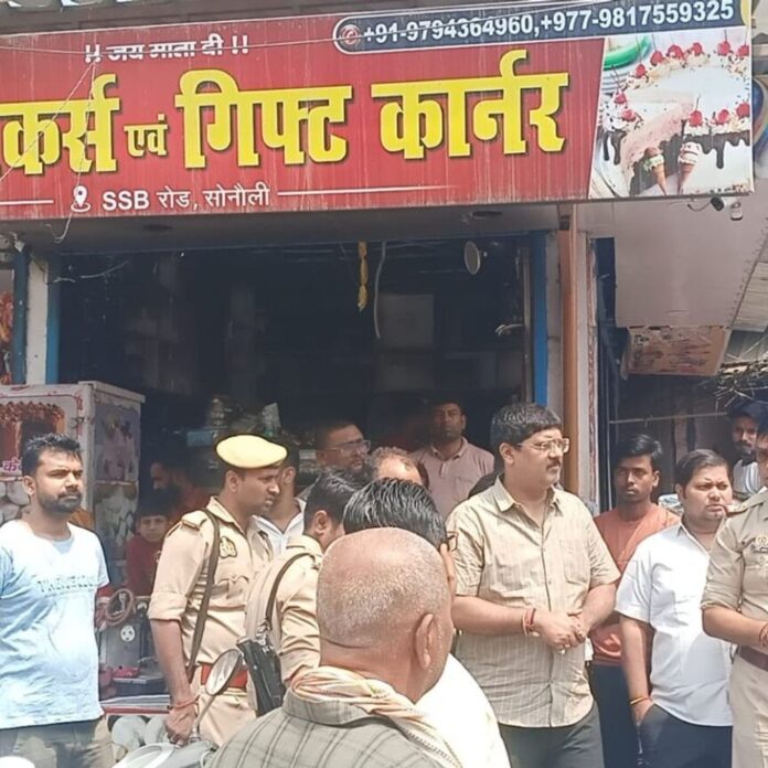 सोनौली कस्बे के एसएसबी रोड पर स्थित ‘मां वैष्णो बेकर्स एंड गिफ्ट कॉर्नर’ में आज सुबह भीषण आग लग गई। शॉर्ट सर्किट के कारण लगी इस आग में दुकान के अंदर रखा लाखों रुपये का सामान जलकर राख हो गया। घटना सुबह करीब 7 बजे हुई, जिससे इलाके में अफरा-तफरी मच गई। जानकारी के अनुसार, सुबह दुकान से अचानक धुआं उठता देखा गया। जब तक आसपास के लोग कुछ समझ पाते, आग तेजी से फैल चुकी थी और उसने विकराल रूप ले लिया। स्थानीय लोगों ने तुरंत दुकान का ताला तोड़कर शटर उठाया और पानी डालकर आग बुझाने का प्रयास शुरू किया। कड़ी मशक्कत के बाद आग पर काबू पाया जा सका। इस अग्निकांड में दुकान के अंदर रखे सजावटी सामान, अन्य कीमती वस्तुएं और सीसीटीवी कैमरे समेत लाखों रुपये का नुकसान हुआ है। प्रारंभिक जांच में आग लगने का कारण बिजली का शॉर्ट सर्किट बताया जा रहा है। दुकान के मालिक सनी गुप्ता, जो नौतनवा के छपवा के निवासी हैं, रोज की तरह रात में दुकान बंद कर घर चले गए थे। सुबह हुए इस हादसे से उन्हें भारी आर्थिक क्षति हुई है। घटना की सूचना मिलते ही नौतनवा विधानसभा के विधायक ऋषि त्रिपाठी तुरंत मौके पर पहुंचे। उन्होंने स्थिति का जायजा लिया और पीड़ित दुकानदार सनी गुप्ता से मुलाकात की। विधायक ने उन्हें हर संभव मदद का आश्वासन देते हुए कहा कि इस कठिन समय में प्रशासन और वह स्वयं पूरी तरह पीड़ित परिवार के साथ खड़े हैं।
