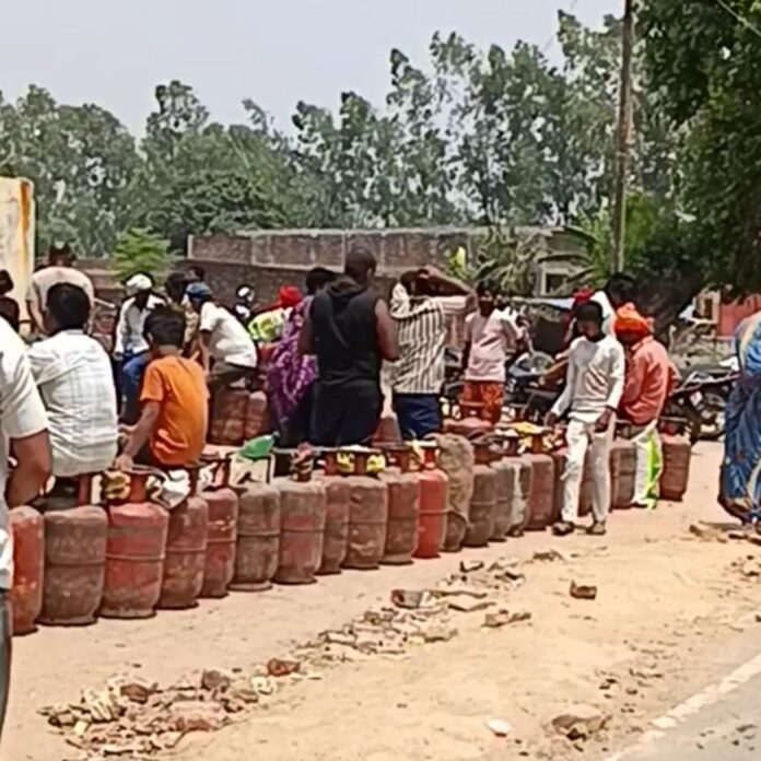 श्रावस्ती में रसोई गैस की किल्लत:उपभोक्ता सिलेंडर के लिए तपती धूप में खड़े रहे