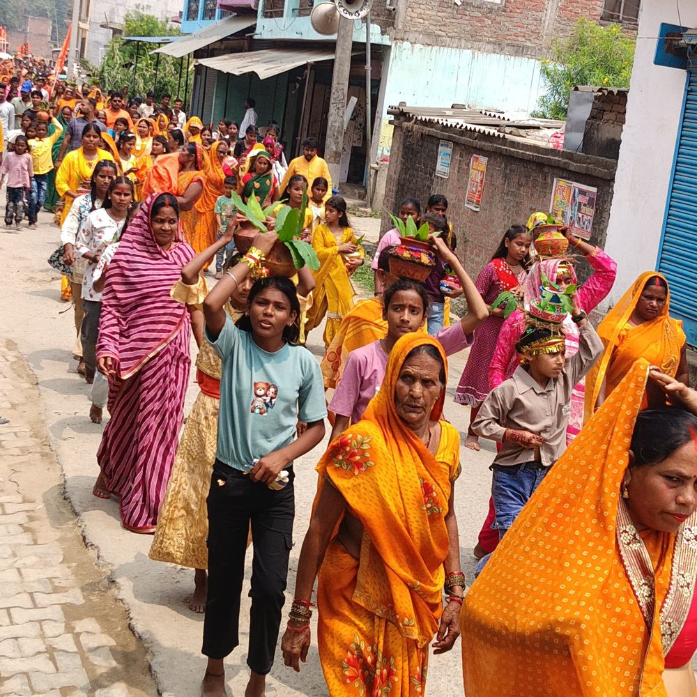 नौतनवा के बरगदवा कस्बा में शनिवार से श्री श्री 108 रुद्र महायज्ञ का आयोजन शुरू हो गया। इस अवसर पर एक भव्य कलश यात्रा निकाली गई, जिसमें 151 पितधारी कन्याओं सहित सैकड़ों ग्रामीण महिला-पुरुषों ने भाग लिया। यह कलश यात्रा कस्बा के काली मंदिर परिसर से शुरू हुई और नौतनवा-ठूठीबारी मार्ग से होते हुए सोनिया नाला तक पहुंची। यहां मंत्रोच्चार के साथ कलशों में जल भरा गया। कलश यात्रा के दौरान लोगों ने पितधारी कन्याओं पर पुष्प वर्षा की। यात्रा में दर्जनों वाहनों के काफिले के साथ लगभग चार सौ महिला-पुरुष शामिल थे। तेज धूप को देखते हुए व्यापारियों ने कन्याओं और ग्रामीणों के लिए प्याऊ की व्यवस्था भी की थी। आयोजक मंडल के अध्यक्ष शैलेश कन्नौज्जिया ने बताया कि वाराणसी से आए कथावाचक अभयानंद पांडेय और उनकी छह सदस्यीय टीम दिन में ग्रामीणों को प्रवचन सुनाएगी। रात्रि में मंच के माध्यम से रामलीला का आयोजन किया जाएगा। यह नौ दिवसीय महायज्ञ 26 अप्रैल को समाप्त होगा, जिसके बाद 27 अप्रैल को विशाल भंडारे का आयोजन किया जाएगा। इस अवसर पर धर्मेंद्र गिरी, विपिन रौनियार, विध्याचल गौंड, प्रवेश साहनी, आकाश वर्मा, रवि गिरी, राकेश गुप्ता, राजू कसौधन, अनूप वर्मा, अशोक तिवारी, सुभाष रौनियार सहित कई अन्य लोग उपस्थित रहे।