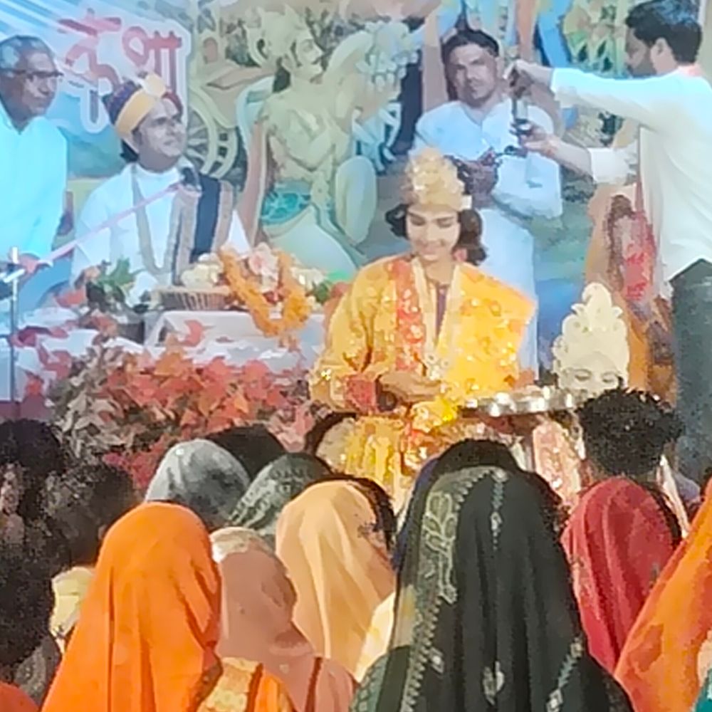 बृजमनगंज में श्रीमद् भागवत कथा जारी:योगेंद्र कृष्ण शास्त्री ने कराया गीता श्रवण, कृष्ण लीला की झांकी