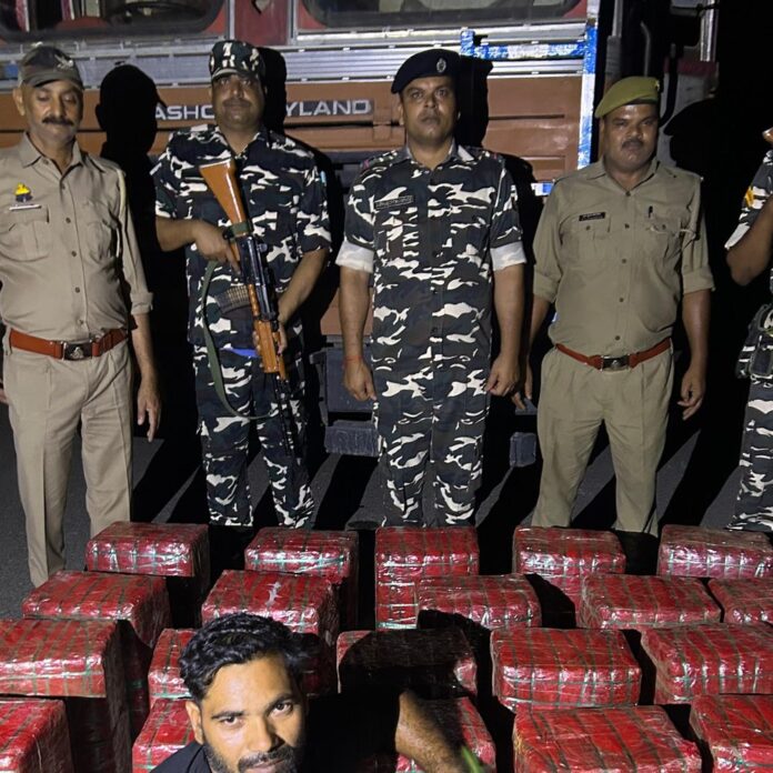 जनपद के बरगदवा थाना क्षेत्र में आबकारी विभाग और एसएसबी की संयुक्त टीम ने बड़ी कार्रवाई करते हुए 327.17 किलोग्राम अवैध गांजा बरामद किया है। इस दौरान एक तस्कर को गिरफ्तार कर उसका ट्रक भी जब्त कर लिया गया। जानकारी के अनुसार, रविवार देर रात ठूठीबारी-नौतनवा मार्ग से जुड़े बॉर्डर रोड पर गश्त के दौरान टीम को मुखबिर से सूचना मिली थी। बताया गया कि नेपाल के काठमांडू से एक ट्रक भारी मात्रा में गांजा लेकर भारत में प्रवेश करने वाला है। सूचना मिलते ही संयुक्त नाका टीम ने बरगदवा थाना क्षेत्र में घेराबंदी की और संदिग्ध ट्रक (HR38W 1261) को रोक लिया। तलाशी के दौरान ट्रक के केबिन से 21 पैकेटों में कुल 327.17 किलोग्राम गांजा बरामद हुआ, जिसे मौके पर इलेक्ट्रॉनिक तराजू से तौला गया। मौके से ट्रक चालक रंजीत गिरी (37 वर्ष), निवासी गोपालपुर थाना, जिला पश्चिम चंपारण (बिहार) को गिरफ्तार कर लिया गया। पूछताछ में आरोपी रंजीत गिरी ने बताया कि वह रक्सौल से दवा लेकर काठमांडू गया था और वहीं से गांजा लोड कर सोनौली बॉर्डर के रास्ते हाजीपुर ले जा रहा था। पुलिस ने ट्रक को एनडीपीएस एक्ट की धारा 60(3) के तहत जब्त कर लिया है। वहीं, आरोपी के खिलाफ बरगदवा थाने में एनडीपीएस अधिनियम की धारा 8/20/23 के तहत मुकदमा दर्ज कर आगे की कार्रवाई की जा रही है। प्रशासन ने इस कार्रवाई को मादक पदार्थ तस्करी के खिलाफ एक बड़ी सफलता बताया है। नागरिकों से अपील की गई है कि ऐसी किसी भी अवैध गतिविधि की सूचना तुरंत संबंधित विभाग को दें, ताकि इस प्रकार के अपराधों पर प्रभावी रोक लगाई जा सके।