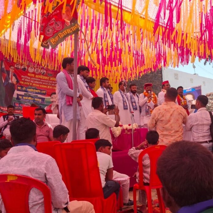 अंबेडकर जयंती पर सपा ने किया कार्यक्रम:वीरपुर में नेताओं ने बाबा साहब को किया नमन, बड़ी संख्या में पार्टी कार्यकर्ता मौजूद रहे