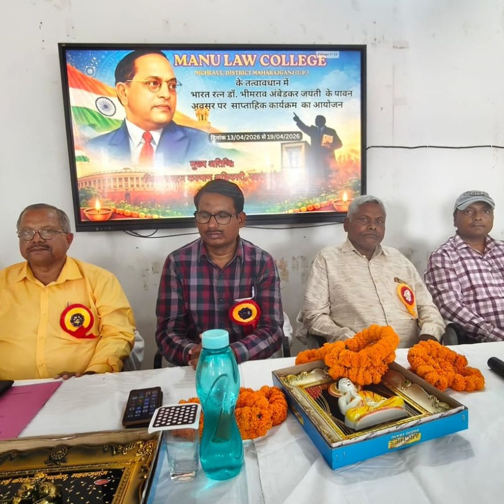 निचलौल के डॉ. भीमराव अंबेडकर जयंती सप्ताह के तहत गुरुवार को मनु लॉ कॉलेज के सभागार में एक कार्यक्रम आयोजित किया गया। इसमें जिला समाज कल्याण अधिकारी महराजगंज विपिन यादव मुख्य अतिथि के रूप में उपस्थित रहे। विशिष्ट अतिथि के तौर पर निचलौल ब्लॉक प्रमुख एवं जिला समन्वयक समाज कल्याण मनोज कुमार सिंह शामिल हुए। एडीओ निचलौल और प्रधानाचार्य अनुसूचित जाति प्राथमिक विद्यालय फरेंदा सहित कई गणमान्य व्यक्ति भी मौजूद थे। कार्यक्रम का शुभारंभ बाबा साहब डॉ. भीमराव अंबेडकर और माँ सरस्वती के चित्रों पर दीप प्रज्ज्वलन और पुष्प अर्पण के साथ हुआ। यह कार्य मुख्य अतिथि विपिन यादव और महाविद्यालय के निदेशक डॉ. दिनेश कुमार सिंह ने किया। इसके बाद छात्र-छात्राओं ने बाबा साहब के व्यक्तित्व और कृतित्व पर आधारित भाषण और कविताएं प्रस्तुत कीं। अपने संबोधन में मुख्य अतिथि विपिन यादव ने बाबा साहब के संघर्षपूर्ण जीवन, उनके शैक्षणिक सफर और सामाजिक विषमताओं के खिलाफ उनके संघर्ष पर प्रकाश डाला। उन्होंने कहा कि बाबा साहब का जीवन सभी के लिए प्रेरणा का स्रोत है। विशिष्ट अतिथि मनोज कुमार सिंह ने संविधान में प्रदत्त समानता और धर्मनिरपेक्षता के अधिकारों पर चर्चा की और युवाओं से बाबा साहब के विचारों को अपनाने का आह्वान किया। कार्यक्रम के दौरान शोध-पत्र/आर्टिकल लेखन प्रतियोगिता के विजेताओं को सम्मानित किया गया। निहारिका निषाद ने प्रथम, रागिनी मणि त्रिपाठी ने द्वितीय और निवेदिता निषाद ने तृतीय स्थान प्राप्त किया। सभी विजेताओं को प्रमाण पत्र और पदक प्रदान किए गए। ब्लॉक प्रमुख ने बाबा साहब के सामाजिक उत्थान में योगदान पर प्रकाश डाला, जबकि एडीओ राकेश कुमार ने उनके आदर्शों पर चलने की प्रेरणा दी। महाविद्यालय के प्राचार्य डॉ. अखिलेश्वर राय ने अतिथियों का स्वागत किया और निदेशक डॉ. दिनेश कुमार सिंह ने धन्यवाद ज्ञापित किया। कार्यक्रम का संचालन सहायक आचार्य डॉ. अरुण कुमार तिवारी ने किया। इस अवसर पर महाविद्यालय के सभी छात्र-छात्राएं, शिक्षक और कर्मचारी उपस्थित थे।