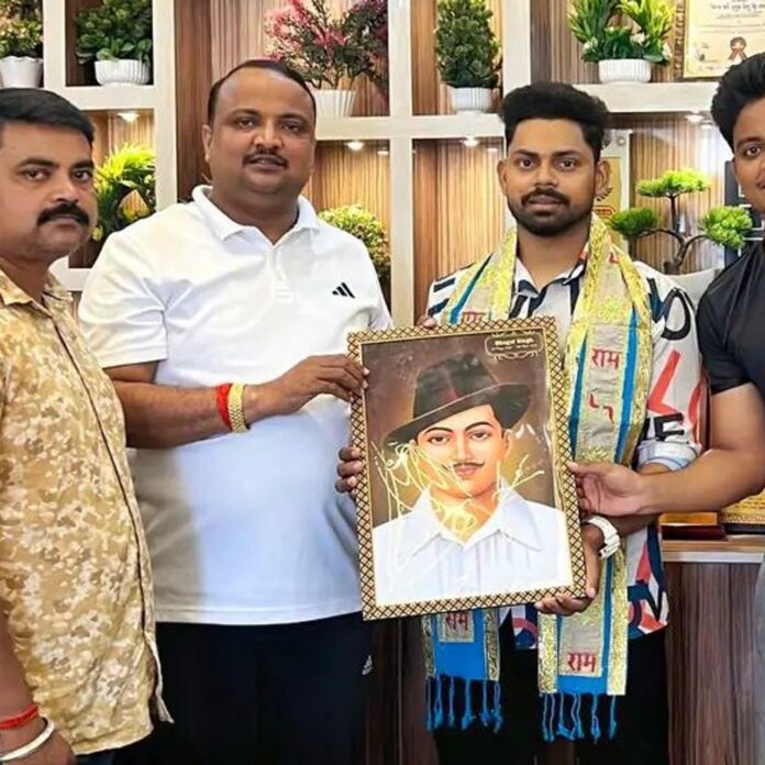 महराजगंज जिले के सिसवा नगरपालिका अध्यक्ष शकुंतला जायसवाल के आवास कार्यालय में रविवार को सूर्या को सम्मानित किया गया। सूर्या ने 1360 किलोमीटर की पदयात्रा कर शहीद भगत सिंह की समाधि पर श्रद्धांजलि अर्पित की थी। इस अवसर पर उन्हें अंगवस्त्र, प्रतीक चिन्ह और भगत सिंह का चित्र भेंट किया गया। सिसवा नगरपालिका निवासी सूर्या उर्फ सूरज रावत ने शहीद भगत सिंह को अपनी प्रेरणा मानते हुए यह पदयात्रा की थी। उन्होंने पंजाब के फिरोजपुर जिले में स्थित हुसैनीवाला राष्ट्रीय शहीद स्मारक पर पहुंचकर भगत सिंह, राजगुरु और सुखदेव की समाधियों पर श्रद्धासुमन अर्पित किए। सूर्या ने 41 दिनों में 1360 किलोमीटर का यह सफर पैदल तय किया। नगरपालिका अध्यक्ष प्रतिनिधि गिरजेश जायसवाल ने सूर्या को सम्मानित करते हुए अंगवस्त्र, प्रतीक चिन्ह और भगत सिंह की तस्वीर भेंट की। इस अवसर पर उन्होंने कहा कि सूर्या अपने लक्ष्य और कठिन परिश्रम से युवाओं के लिए प्रेरणा का स्रोत बने हैं। सम्मान समारोह में मनोनीत सभासद मुन्ना गोंड, शिव कुमार तिवारी, हर्ष जायसवाल, धीरज जायसवाल, राहुल जायसवाल सहित नगर के कई गणमान्य व्यक्ति उपस्थित रहे।