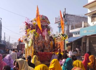 हनुमान मंदिर में मूर्तियों का भव्य नगर दर्शन:प्राण-प्रतिष्ठा अनुष्ठान के चौथे दिन उमड़ा भक्ति का सैलाब