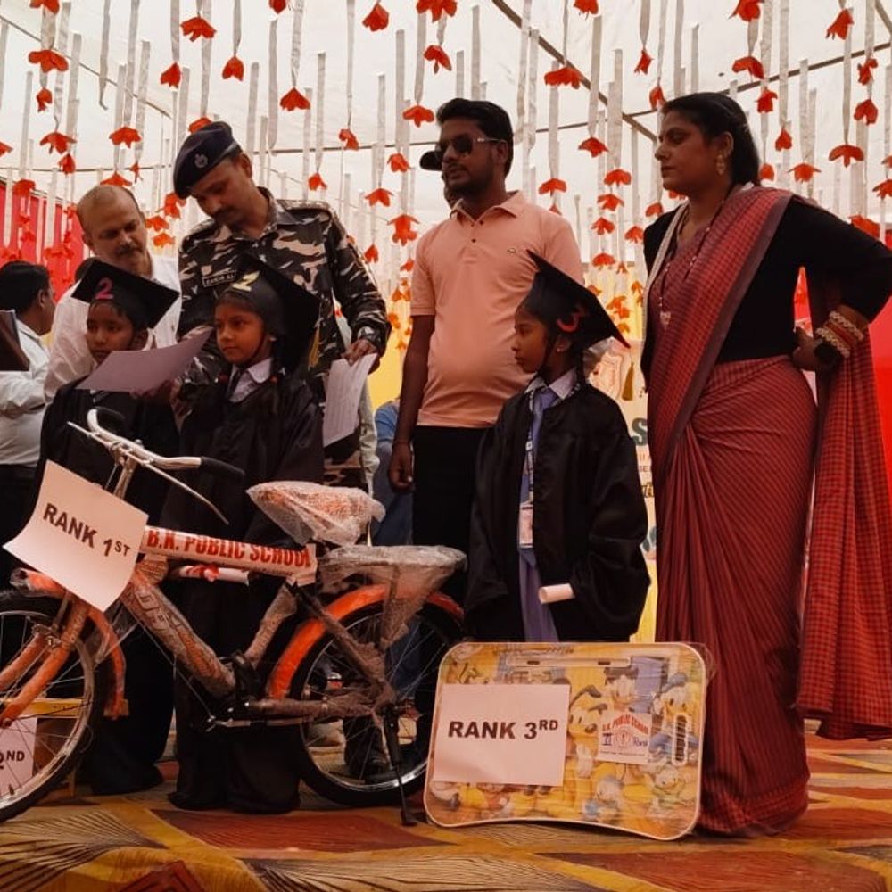 भगीरथपुर स्थित बीके पब्लिक स्कूल में गुरुवार कक्षा नर्सरी से 12वीं तक के प्रतिभाशाली विद्यार्थियों के लिए पुरस्कार वितरण समारोह आयोजित किया गया। इस अवसर पर प्रथम, द्वितीय और तृतीय स्थान प्राप्त करने वाले विद्यार्थियों को साइकिल, पंखा और स्टडी टेबल पुरस्कार के रूप में दिए गए। कार्यक्रम में लक्ष्मीपुर के खंड विकास अधिकारी (BDO) मृत्युंजय यादव मुख्य अतिथि के रूप में उपस्थित रहे, जबकि सशस्त्र सीमा बल (SSB) जोगियाबारी के निरीक्षक जाकिर अली विशिष्ट अतिथि थे। विद्यालय के प्रबंधक संजीव राय, प्रबंध-निदेशिका पूनम राय, प्रधानाचार्य आनंद प्रभाकर, भागीरथी कृषक इंटर कॉलेज के प्रवक्ता मनोज कन्नौजिया तथा दोनों विद्यालयों के सभी अध्यापक-अध्यापिकाएं भी मौजूद थे। खंड विकास अधिकारी मृत्युंजय यादव ने कार्यक्रम को संबोधित करते हुए कहा कि मेहनत से हर कामयाबी प्राप्त की जा सकती है। परिश्रम से बड़ी कोई चाबी नहीं है, परिश्रम करके अपनी शिक्षा रूपी चाबी से सफलता के दरवाजे खोले जा सकते हैं। विशिष्ट अतिथि एसएसबी उपनिरीक्षक जाकिर अली ने भी बच्चों को सफलता प्राप्ति के मंत्र बताए। कार्यक्रम का शुभारंभ मुख्य अतिथि द्वारा माता सरस्वती के चित्र के समक्ष धूप-दीप प्रज्वलित कर किया गया। मुख्य अतिथि ने विद्यार्थियों को अपने प्रेरणादायक वचनों से परिश्रम करते हुए सफलता की ओर बढ़ने के लिए प्रोत्साहित किया। प्रबंधक संजीव राय ने मुख्य और विशिष्ट अतिथि का स्वागत अंगवस्त्र देकर किया। प्रबंधक संजीव राय ने विद्यालय के संचालन-वर्ष की अवधि का उल्लेख करते हुए इसकी प्रगति और शिक्षण कार्य को और भी उत्कृष्ट बनाने का आश्वासन दिया। उन्होंने विद्यार्थियों को सफलता की शुभकामनाएँ देते हुए निरंतर सफल होने की प्रेरणा दी। प्रबंध-निर्देशिका पूनम राय ने भी विद्यार्थियों को भविष्य में ऐसे ही आगे बढ़ने की प्रेरणा दी। मनोज कन्नौजिया ने संजीव राय को क्षेत्र के अंबेडकर और गांधी की संज्ञा देते हुए उन्हें शिक्षा के प्रसारक के रूप में सराहा और शिक्षा क्षेत्र में उनके योगदानों से अवगत कराया। उन्होंने विद्यार्थियों को भी प्रेरित किया। अंत में, प्रधानाचार्य ने अपने प्रेरणादायक भाषण के साथ कार्यक्रम की समाप्ति की घोषणा की।