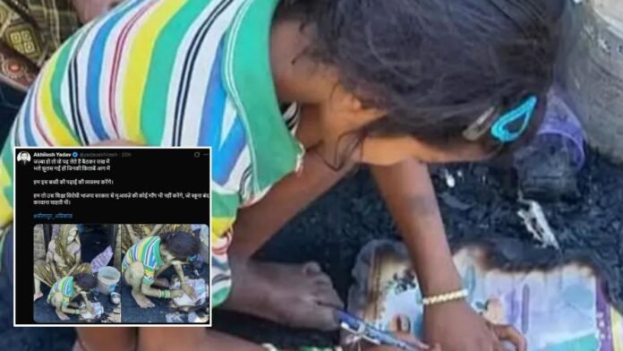 राख में बैठकर पढ़ती नजर आई छात्रा