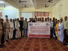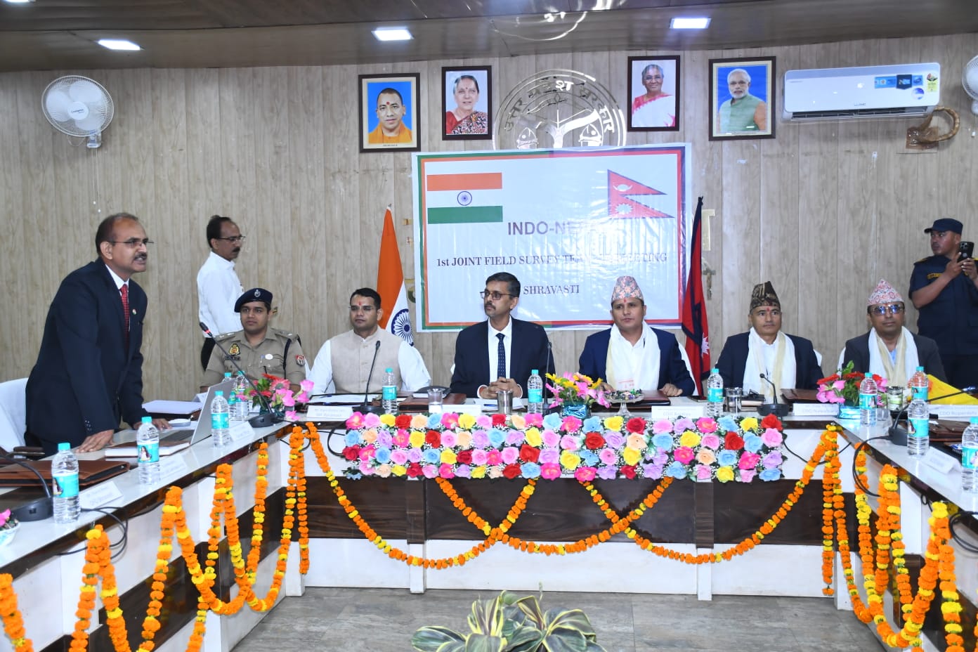 भारत-नेपाल अंतर्राष्ट्रीय सीमा सर्वेक्षण टीम-3 की प्रथम अंतर्राष्ट्रीय बैठक आज दिनांक 28-03-2026 को जिलाधिकारी श्रावस्ती अश्विनी कुमार पाण्डेय के नेतृत्व में कलेक्ट्रेट सभागार में सम्पन्न हुई। भारत-नेपाल की संयुक्त सर्वेक्षण टीम-3 उत्तर प्रदेश राज्य के बलरामपुर के जिलाधिकारी विपिन कुमार जैन एवं बहराइच, सिद्धार्थनगर, महाराजगंज के उच्चाधिकारियों एवं नेपाल राष्ट्र के बर्दिया, बाँके, रुपन्डीहा, डांग, कपिलवस्तु एवं नवलपरासी के मुख्य जिलाधिकारियों ने बैठक में प्रतिभाग किया। सशस्त्र सीमा बल के 62वीं, 42वीं, 59वीं 9वीं, 50वीं, 43वीं, 22वीं और 70वीं बटालियन के कमांडेंट एवं नेपाल राष्ट्र के संबन्धित पुलिस अधीक्षकों ने प्रतिभाग किया। इसके अतिरिक्त दोनों राष्ट्रों के संबन्धित जनपदों के वरिष्ठ वन अधिकारी व पुलिस अधिकारियों ने भी बैठक में प्रतिभाग किया। जिलाधिकारी श्रावस्ती ने जिलाधिकारी बर्दिया एवं टीम लीडर नेपाल गोगन बहादुर हमल को पुष्प गुच्छ देकर उनका स्वागत किया। बैठक में प्रतिभाग करने वाले सभी अधिकारियों को स्मृति चिन्ह प्रदान कर उन्हें सम्मानित किया गया।