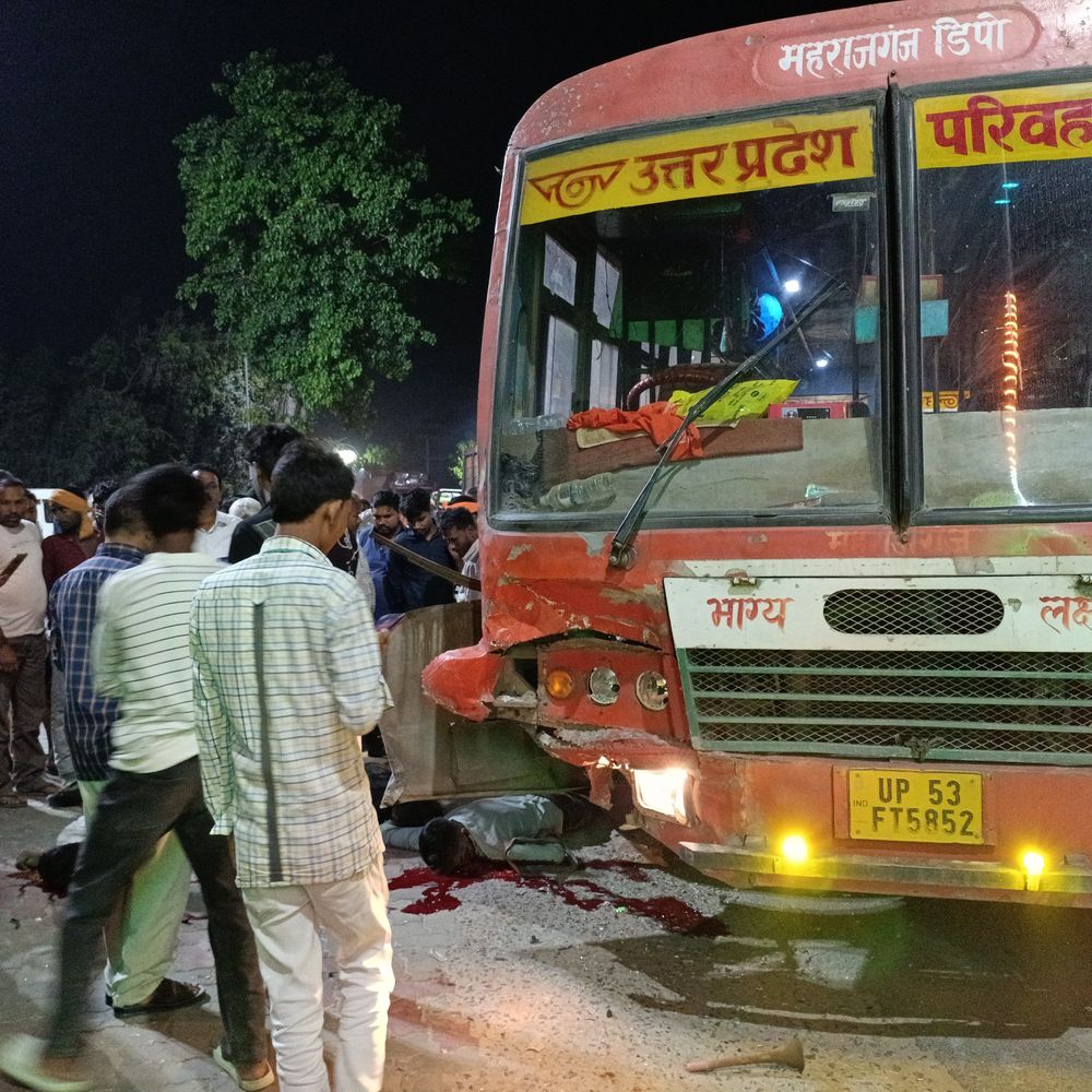 रोडवेज बस की चपेट में आने से तीन की मौत:महराजगंज में बस और बाइक की आमने-सामने की भिड़ंत में पहिये के नीचे आए युवक, ड्राइवर फरार