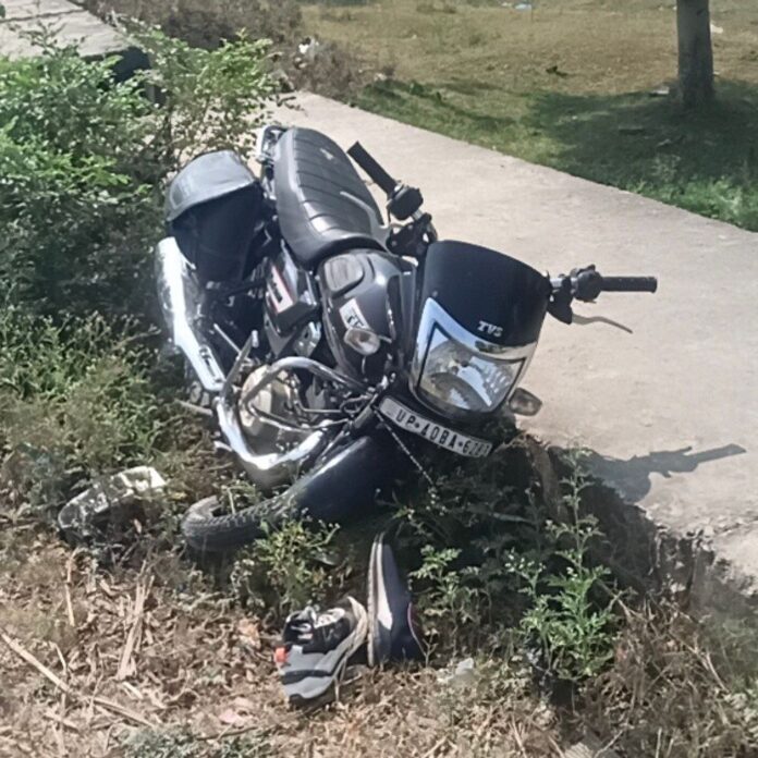इकौना में अनियंत्रित बाइक पुलिया से टकराई:नेशनल हाईवे पर हादसा, चार लोग गंभीर रूप से घायल