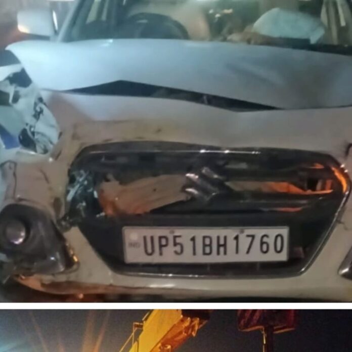 हरैया में गड्ढों से अनियंत्रित कार टकराई:कार सवार गंभीर घायल, मनोरमा पुल बना हादसा का कारण