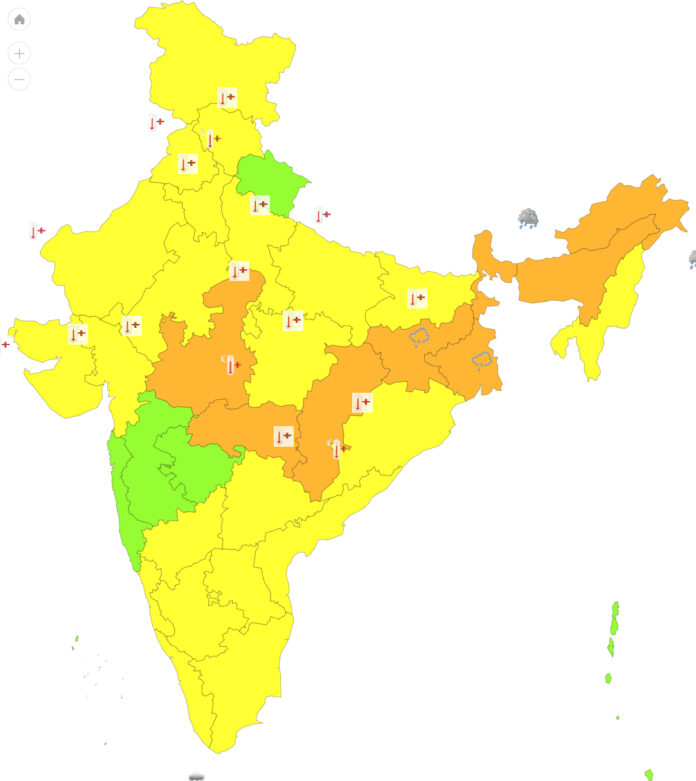 आज मौसम के कई रंह देखने को मिलेंगे। एक तरफ दोपहर के समय लू चलने की संभावना है तो कुछ राज्यों में शाम होते-होते बादल पानी बरसा सकते हैं। मौसम विभाग ने आज उत्तर भारत और मध्य भारत के कई राज्यों में लू का अलर्ट घोषित किया है। जिन राज्यों में लू का अलर्ट घोषित किया गया है उनमें हिमाचल प्रदेश के कुछ जिले, पंजाब, हरियाणा, चंडीगढ़, दिल्ली, राजस्थान, गुजरात, मध्य प्रदेश और बिहार हैं। इसके साथ ही मौसम विभाग ने पश्चिमी मध्य प्रदेश, महाराष्ट्र के विदर्भ रीजन में और छत्तीसढ़ में लू का येलो अलर्ट जारी किया है। इन जगहों पर रात के समय भी ज्यादा गर्मी पड़ने की संभावना है।