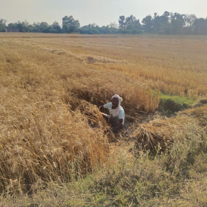 Homeउत्तर प्रदेश (Uttar Pradesh)रखौना में गेहूं की कटाई तेज, किसान चिंतित:बदलते मौसम से फसल को...