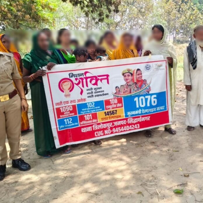 सिद्धार्थनगर के इटवा क्षेत्र में त्रिलोकपुर पुलिस की मिशन शक्ति टीम ने गुरुवार को ग्राम गोविंदपुर में महिला जागरूकता कार्यक्रम आयोजित किया। इस दौरान बालिकाओं और महिलाओं को महिला अपराधों से बचाव, साइबर सुरक्षा और उनके अधिकारों के बारे में जानकारी दी गई। यह कार्यक्रम मिशन शक्ति अभियान के तहत आयोजित किया गया था, जिसमें महिलाओं और बालिकाओं को विभिन्न सरकारी योजनाओं और हेल्पलाइन नंबरों से अवगत कराया गया। टीम ने जागरूकता बढ़ाने के लिए पम्पलेट भी वितरित किए। वरिष्ठ पुलिस अधीक्षक सिद्धार्थनगर डॉ. अभिषेक महाजन द्वारा चलाए जा रहे महिला सुरक्षा अभियान के तहत, अपर पुलिस अधीक्षक प्रशांत कुमार प्रसाद के पर्यवेक्षण और क्षेत्राधिकारी डुमरियागंज बृजेश कुमार वर्मा के निर्देशन में यह कार्यक्रम संपन्न हुआ। थानाध्यक्ष चंद्रकांत पाण्डेय ने इसका कुशल नेतृत्व किया। मिशन शक्ति फेज 5.0 के दूसरे चरण के तहत, ‘बहू/बेटी सम्मेलन’ का भी आयोजन किया गया। इसमें प्रधानमंत्री मातृ वंदना योजना, मुख्यमंत्री सामूहिक विवाह योजना, रानी लक्ष्मी बाई बाल एवं महिला सम्मान कोष, नारी शक्ति वंदन अधिनियम, मातृ शक्ति को संबल, निराश्रित महिला पेंशन योजना और मुख्यमंत्री कन्या सुमंगला योजना जैसी महत्वपूर्ण सरकारी योजनाओं की विस्तृत जानकारी दी गई। महिलाओं से संबंधित अपराधों पर अंकुश लगाने के लिए जारी विभिन्न हेल्पलाइन नंबरों की भी जानकारी दी गई। इनमें 1090 (वुमेन पावर लाइन), 181 (महिला हेल्पलाइन), 1076 (मुख्यमंत्री हेल्पलाइन), 112 (पुलिस हेल्पलाइन), 1098 (चाइल्ड केयर लाइन), 108 (एम्बुलेंस हेल्पलाइन), 101 (अग्निशमन हेल्पलाइन) और 1930 (साइबर हेल्पलाइन) शामिल थे। इस जागरूकता कार्यक्रम में उपनिरीक्षक कृष्ण कुमार पाण्डेय, हेड कांस्टेबल धनंजय दुबे, कांस्टेबल सत्य प्रकाश यादव और महिला कांस्टेबल इंदिरा तिवारी सहित पुलिस टीम के सदस्य मौजूद रहे। कार्यक्रम में गोविंदपुर गांव की बड़ी संख्या में महिलाओं और बालिकाओं ने भाग लिया।